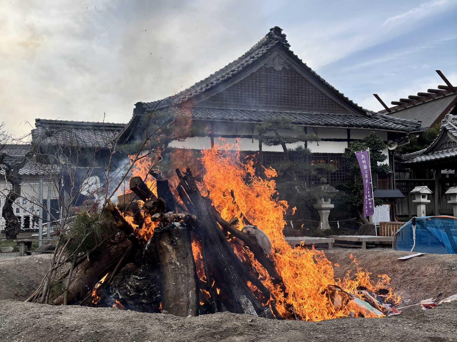その後、注連縄は火にくべられ、炎が上がる中で、参加者は心を込めて厄を祓い、無病息災を願います。